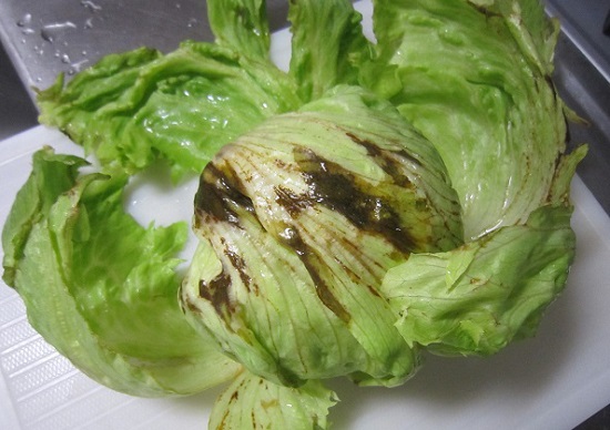都内在住のAさんは先日、大手チェーンのコンビニエンスストアでレタスを1玉購入し帰宅後にすぐに包装ビニールを開封したところ、レタス外面を1枚剥くと中が黒々としていて傷んでおり、とても食べられるような代物ではなかったという。