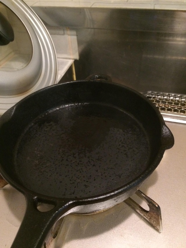そしたらまずはスキレットにオン!!! 最高火力でこんがりと