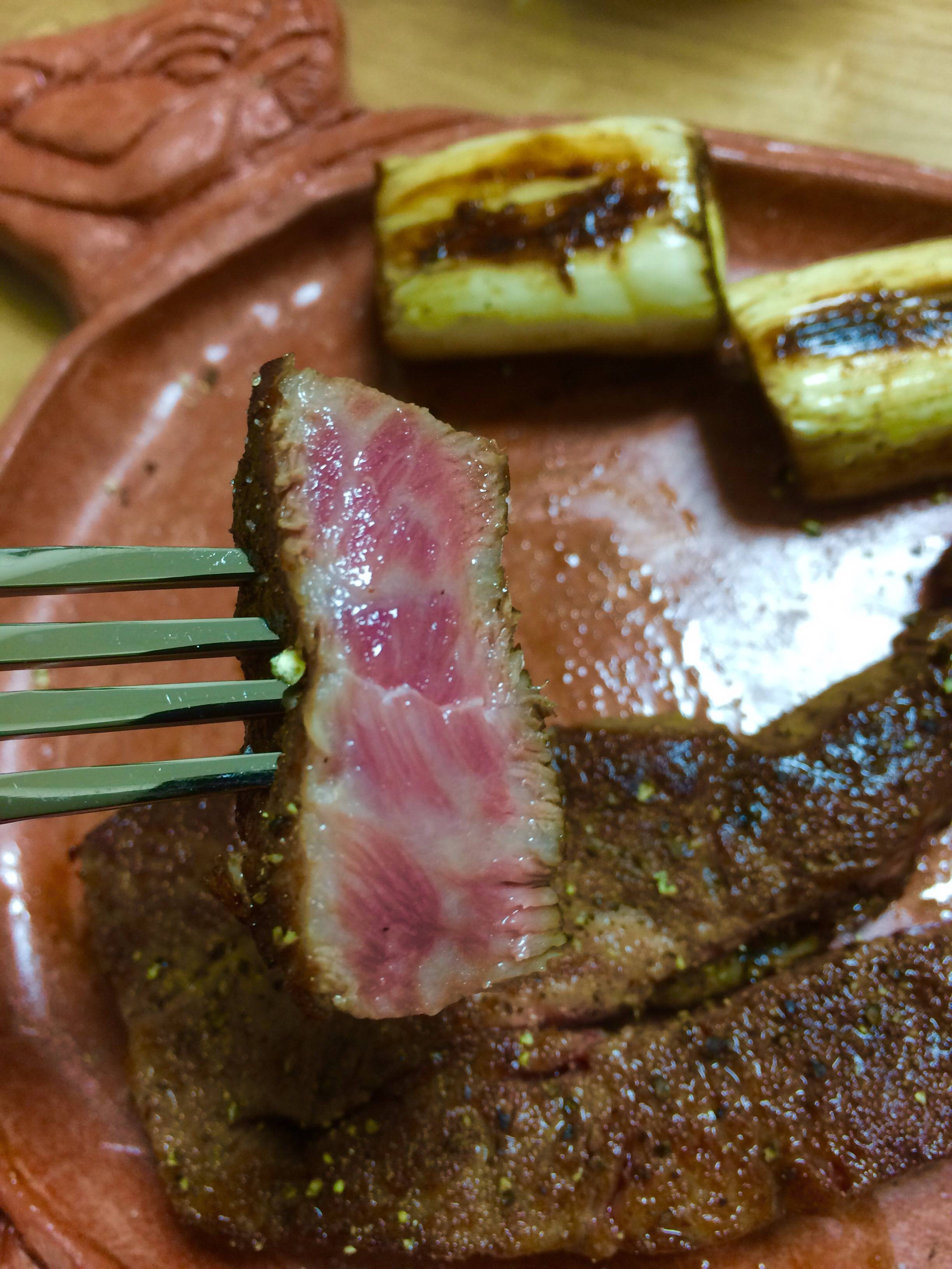 日の通りやすい端の方はミディアムっぽいところもあった 和牛だとこれくらいの方が好みの人も多いかな?