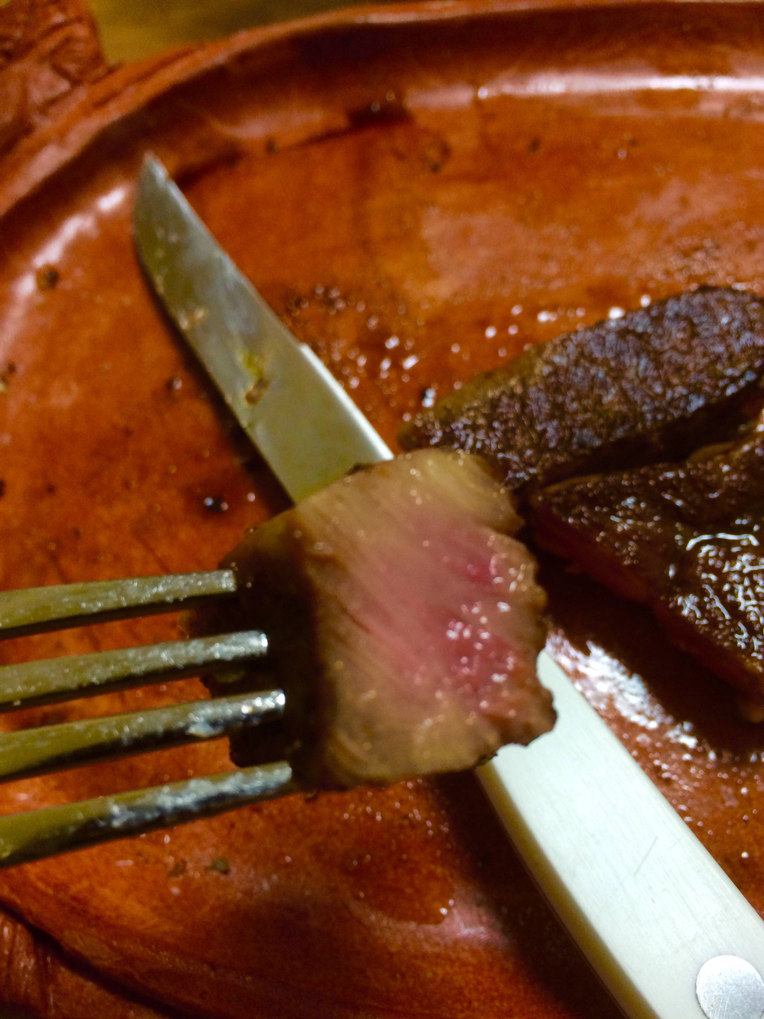 いい肉ってテキトーに焼いても美味いんだけど、赤身の美味しくなる温度より脂の融点が低いから、ホントは焼くのが結構難しい さらに俺の好みは表面カリッとだ