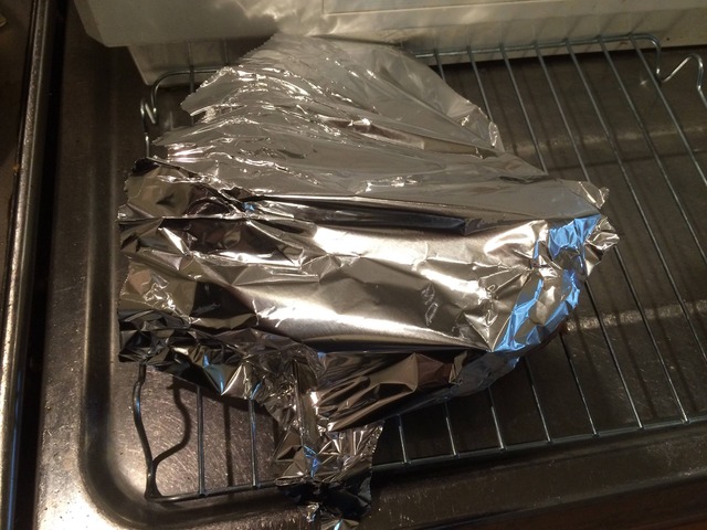 肉が蒸されない程度にフワッとアルミホイルで保温