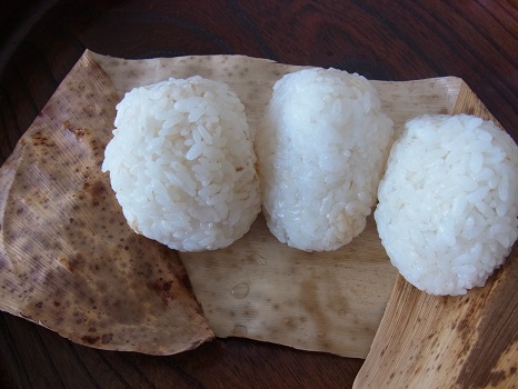 早朝にほっかほかの塩むすび食べたいやで