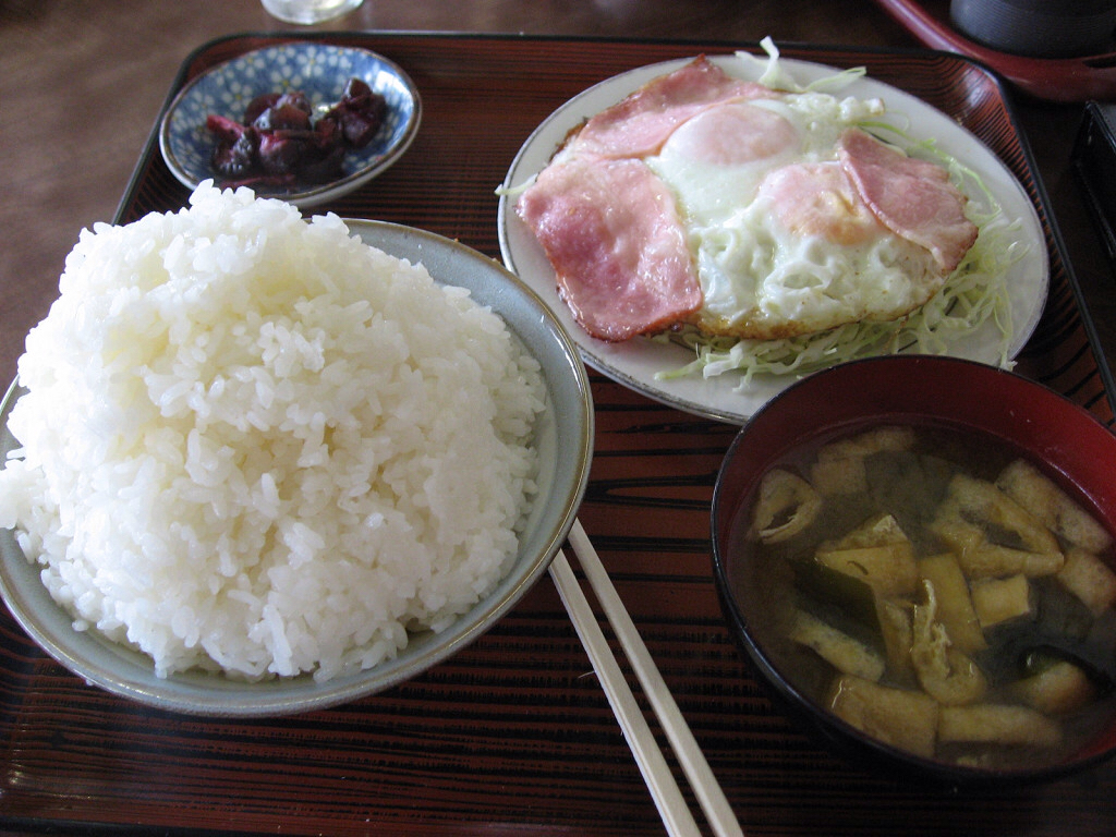 大負けに負けて米100円味噌汁50円ハムエッグ50円