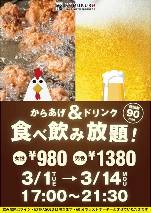 唐揚げラーメンをつまみに飲み放題で90分2000円ならお得