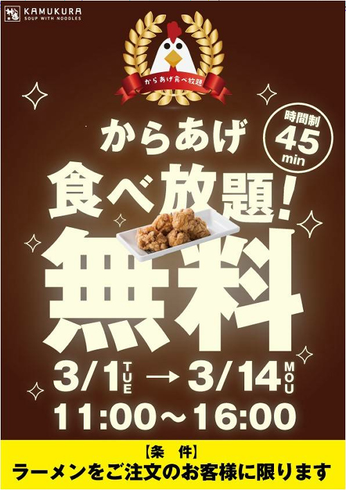 ラーメンを1つでも注文すれば、唐揚げが食べ放題だと!?