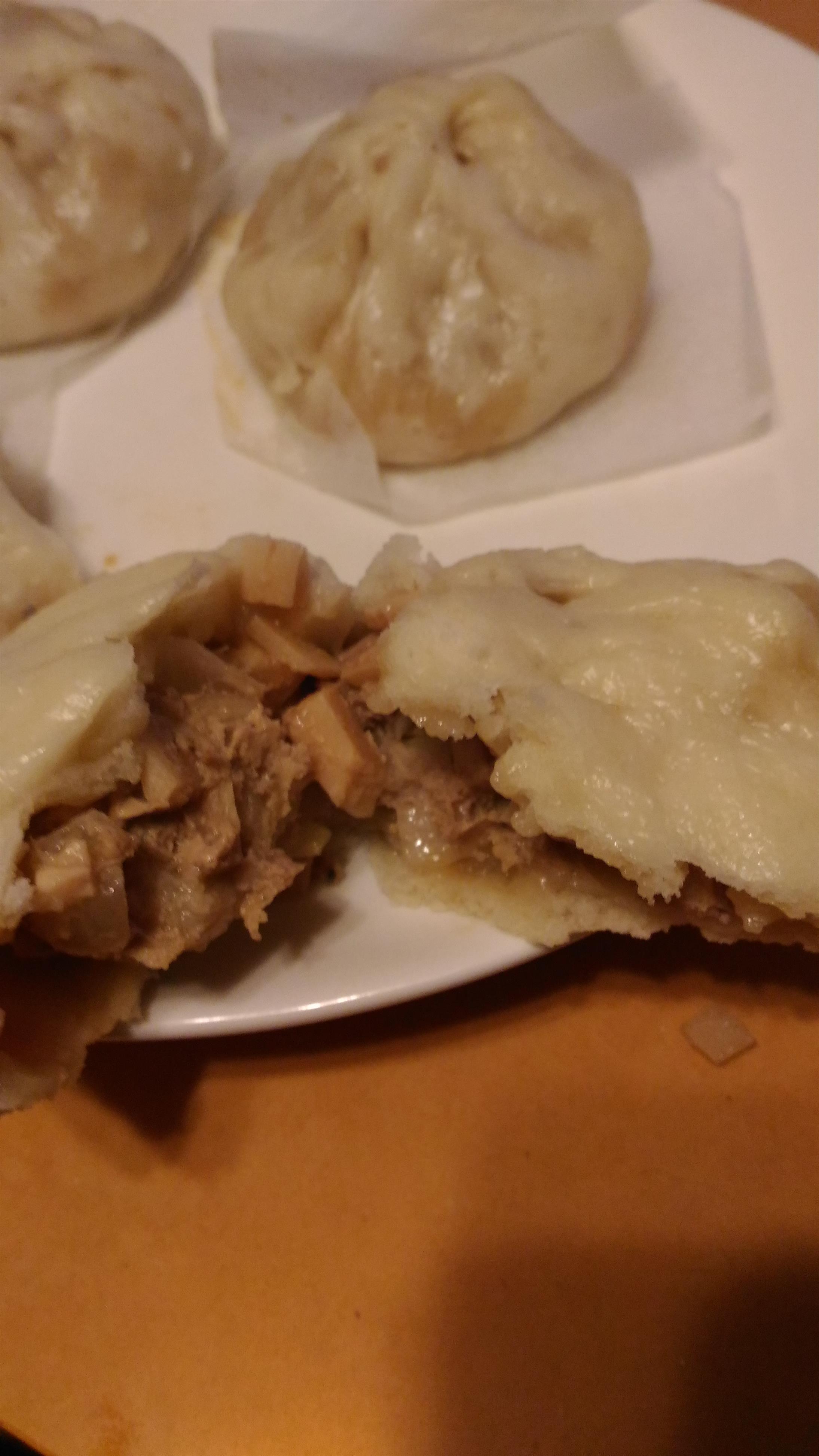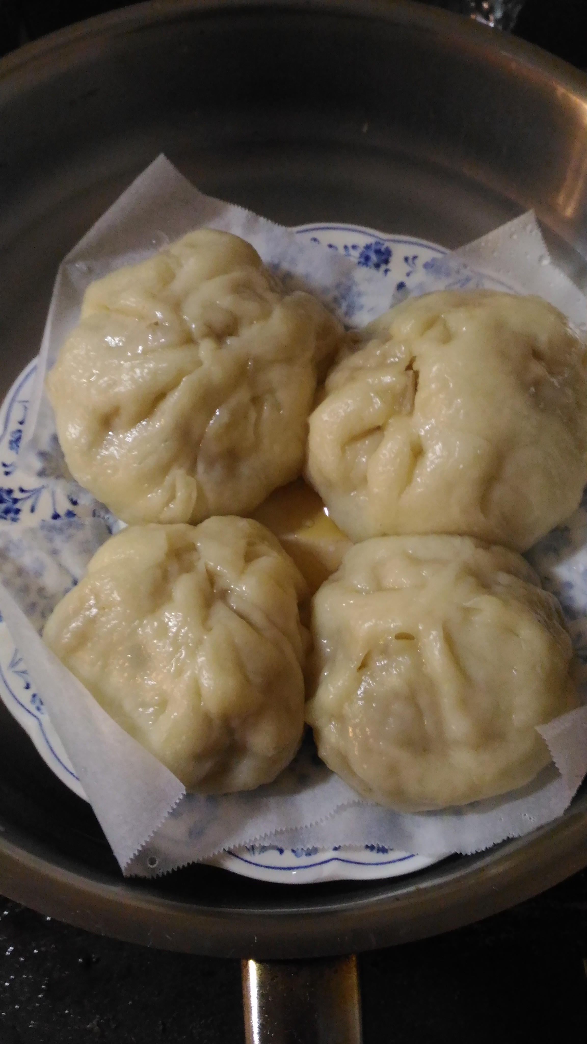 蒸し上がり!!! 天辺からちょい肉汁が噴き出してしまいました。
