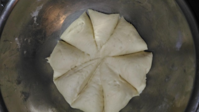 膨らまなかった生地も適当に8等分。 棒状にしてからとか言う人もいるけどめんどくさい…。