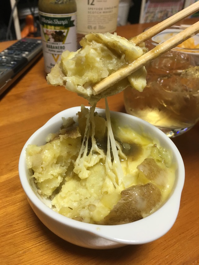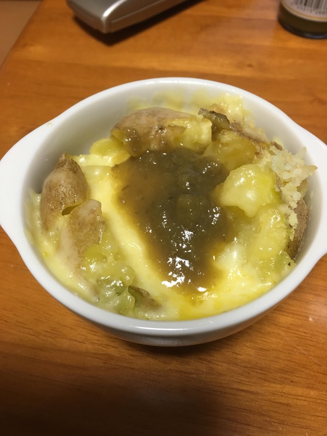 レンチンして柔らかくなったジャガイモを適当に砕いて