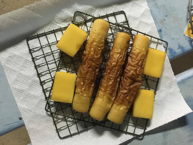 燻製は燻し上がったものをそのまま食べても問題ないですが一晩おいたほうが味が馴染むとされているのでひとまず冷蔵庫に入れます。