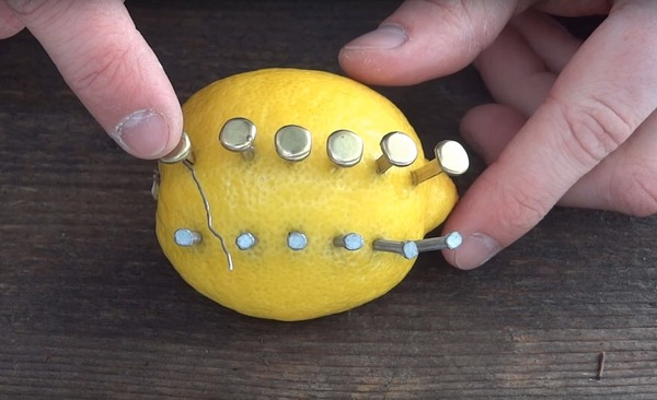 > 必要なのはレモン、銅クリップ、亜鉛釘、ワイヤー、スチールウールだけ! ないだろ・・・