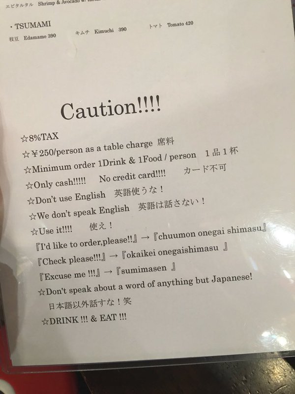 メニュー以前に店の入口にも書いておくべきだな。