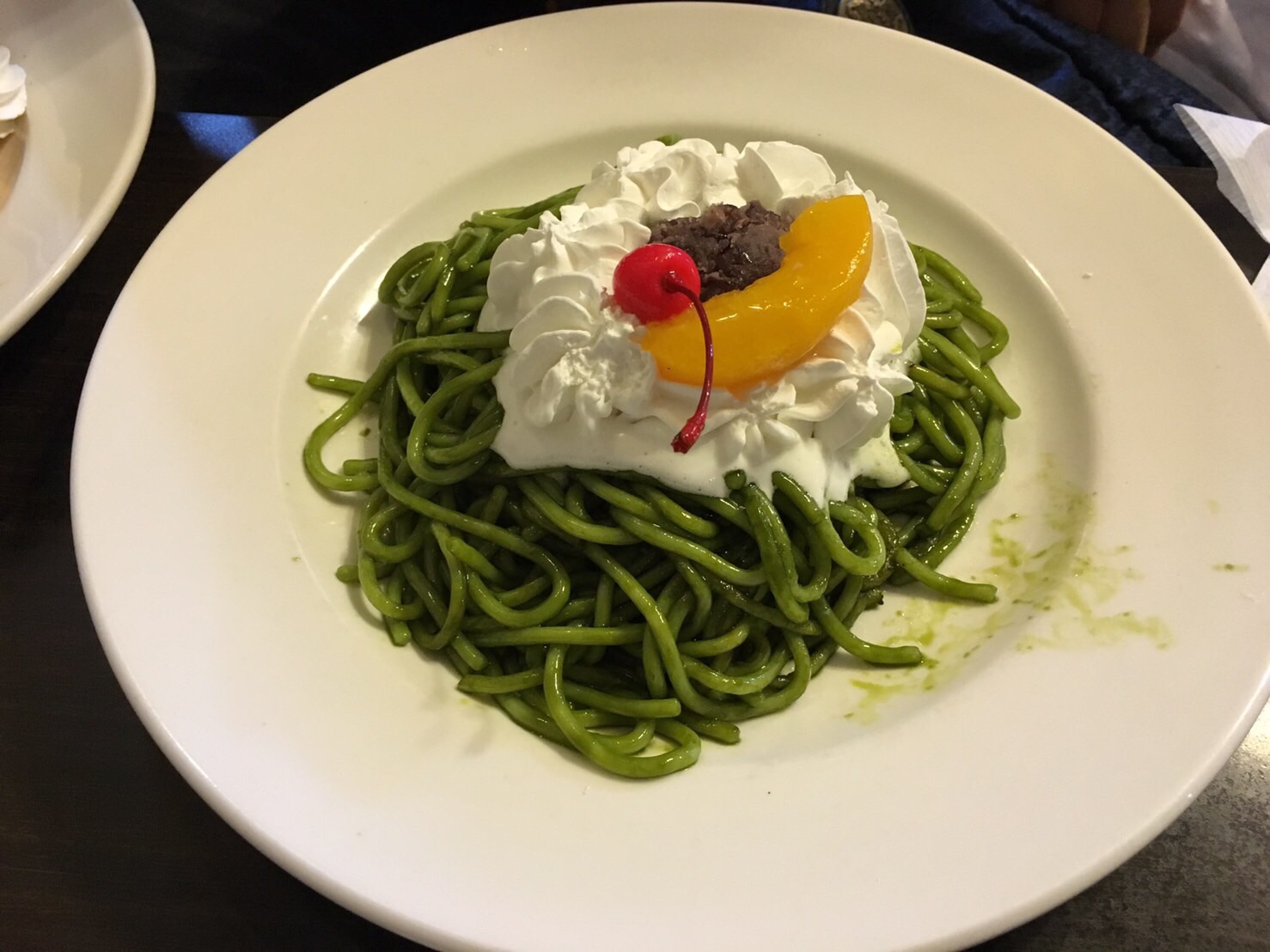 見た目はマジでうまそうやったが食ってみるとイチゴシロップが練りこまれた極太麺や…