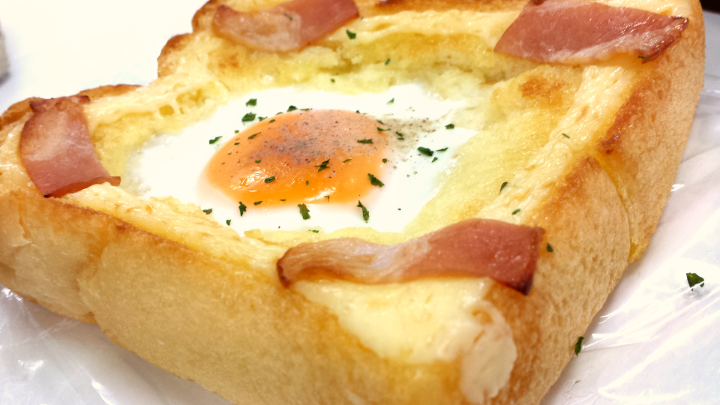ベーコンのとこで卵切り離して、全部で二口で食うんやけどこれでいいんか?