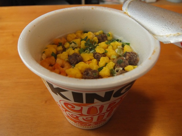 先週キングサイズのを食べたから記念に撮っておいた。お腹すいてたからスープまでぜんぶ飲み干してしまった(´・ω・`) 熱湯520mlだってよ。