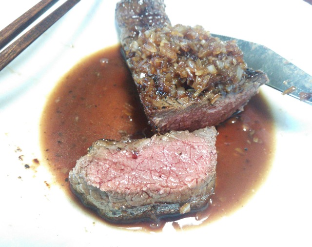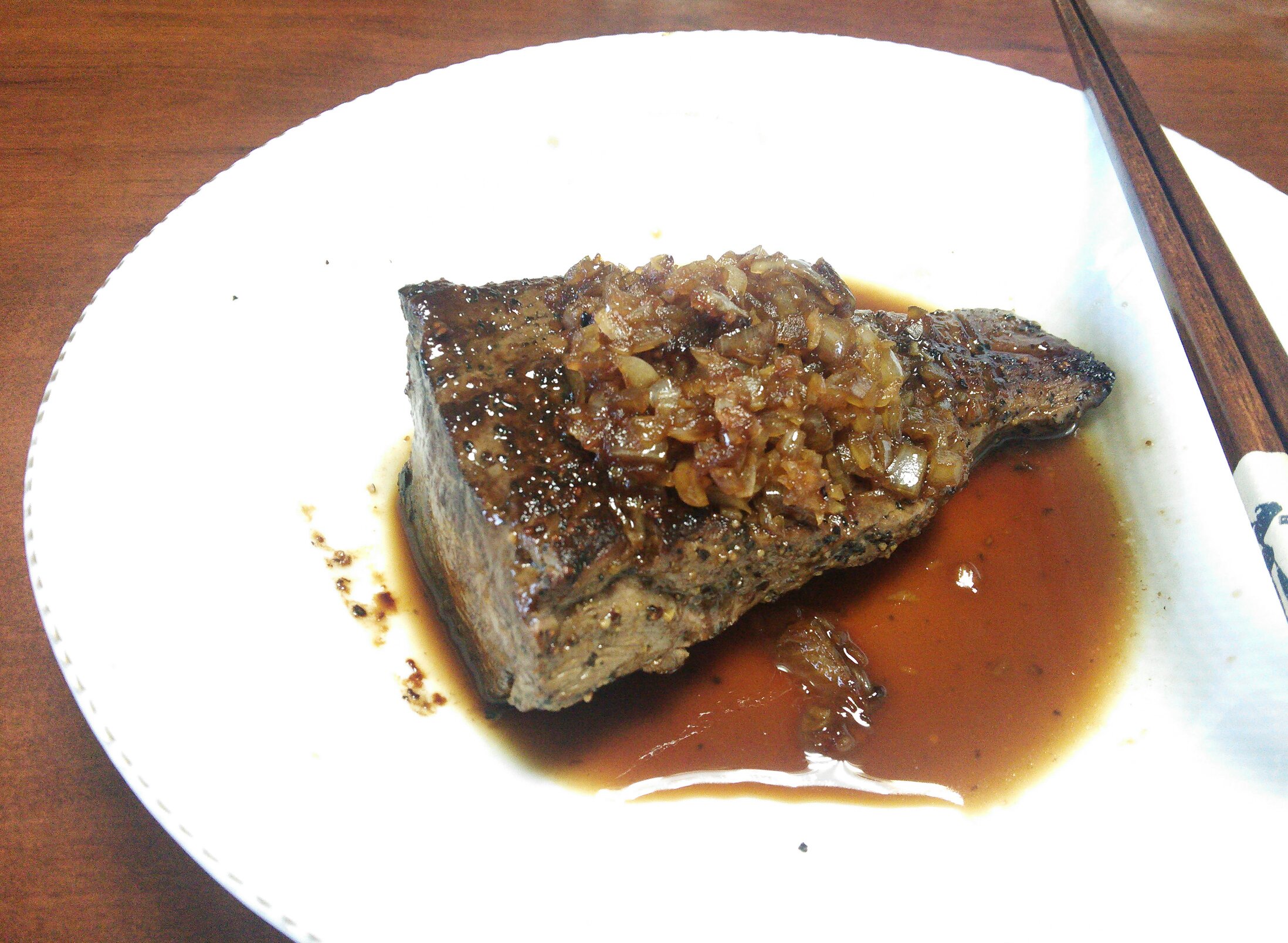 きちんと筋切りして卸玉ねぎに二時間ぐらい漬け込んでおけばオージーでも和牛並みの柔らかさになるで