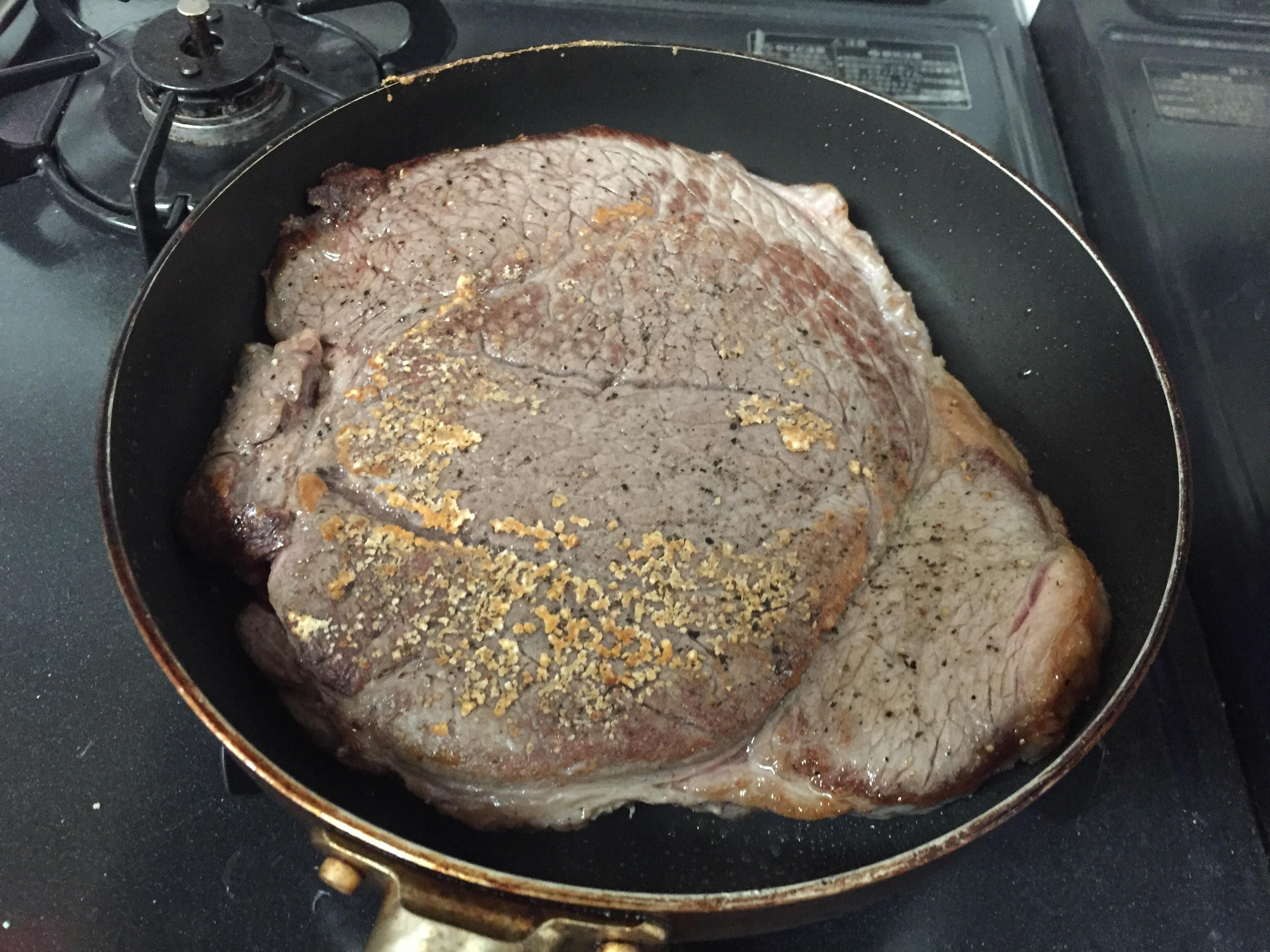 【画像あり】昨日買った700グラムのステーキ焼いてるぞwwwww