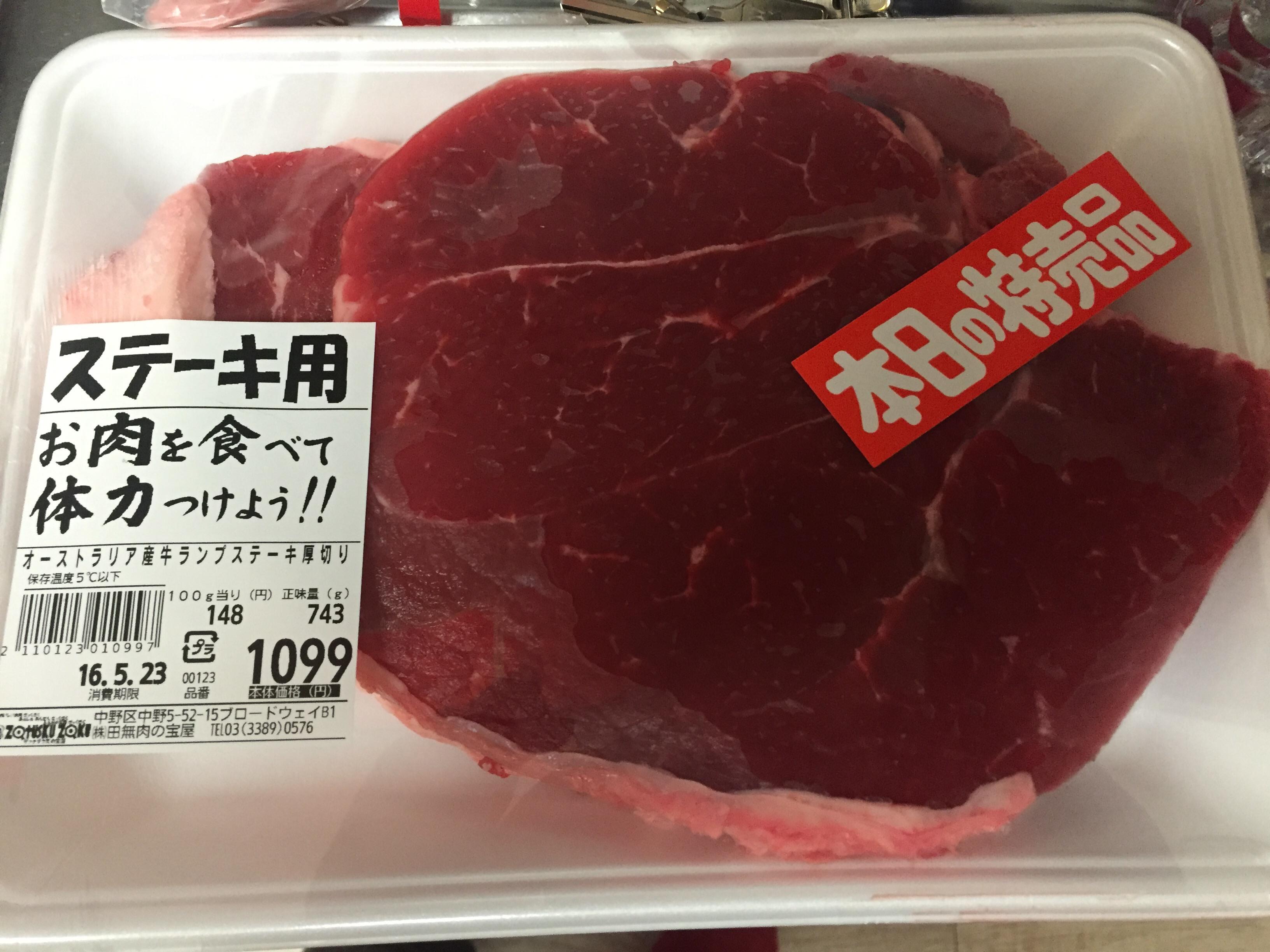 まだ晩酌してへんし、明日用にステーキ肉買ってこようかなぁ