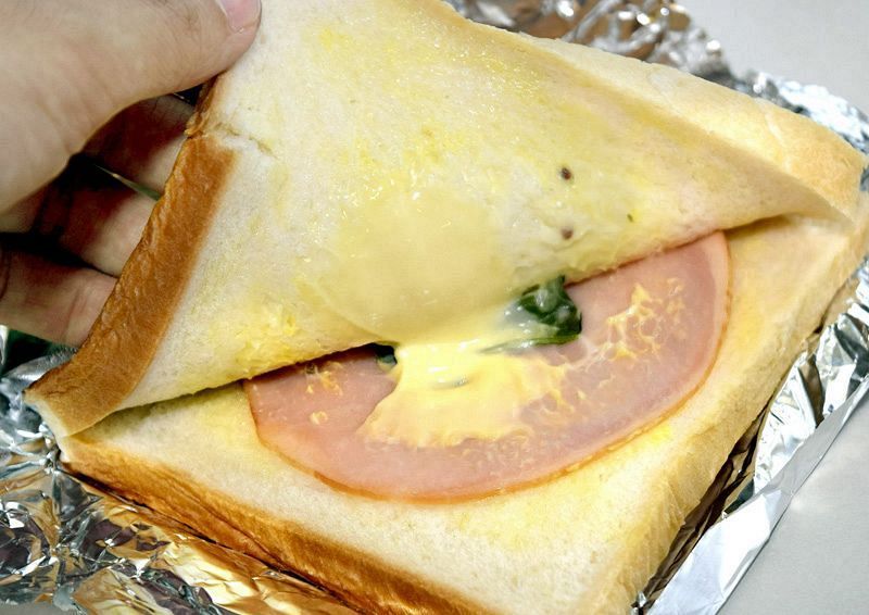 トーストサンドの中身はハム、レタス、マヨネーズ。シンプルだが熱々でおいしい