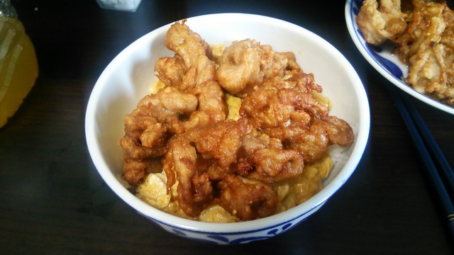その上に豚肉の唐揚げを乗せたもの旨いよ