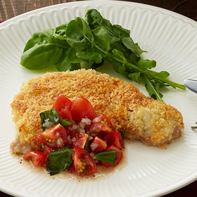 ミラノ風とか言うパン粉に粉チーズ混ぜて揚げたあとトマトソース掛けるマンも居るからな。