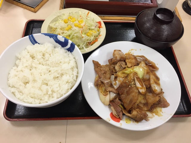 【画像あり】ワイ、こんな時間に松屋で生姜焼き定食をペロリ