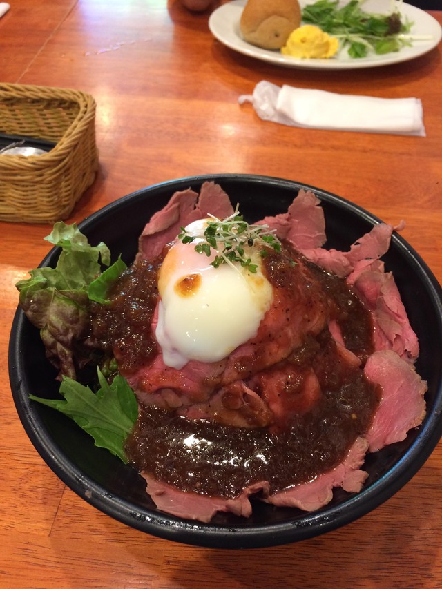 近くの店のローストビーフ丼は、典型的なローストビーフ用の甘ダレが