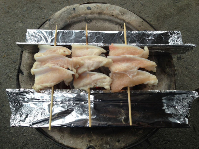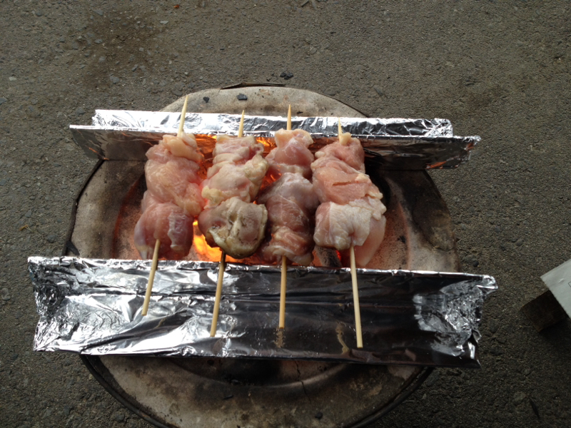 炭熾して庭で焼き鳥焼いたら鳥皮の油で煙がすごいことになって、
