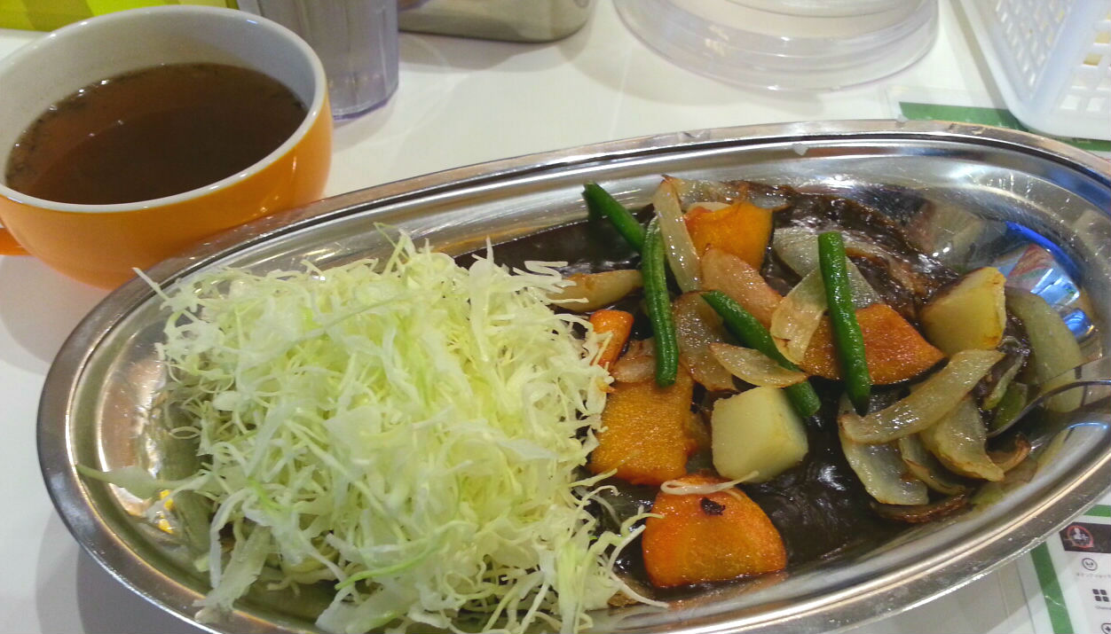 ここはキャベツ邪魔、食器ぶつかる音うるさいのが。帯広のインディアンだったかのほうが500円しない上に、神保町の高いカレー屋よりうまかった。