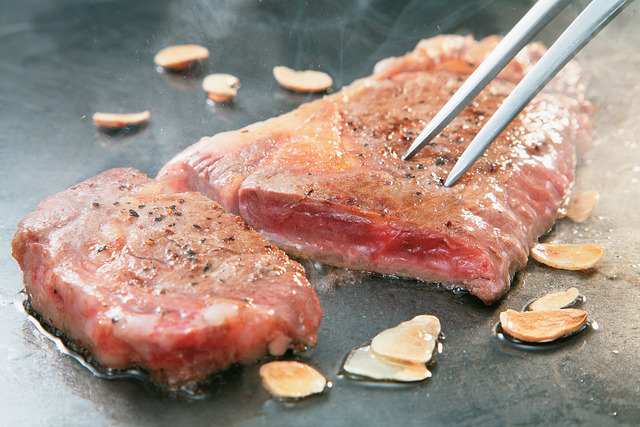わさび醤油は霜降りの表面を軽く焼き色つけただけのステーキに付けて食べるものだ