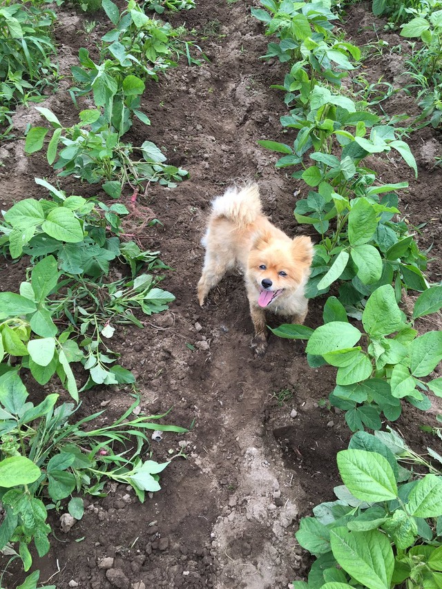 普段はせいぜい大人1人と散歩程度なのに今日はみんなで土いじりで嬉しくてたまらんって顔