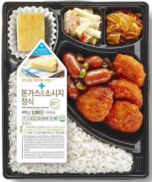 CUの人気弁当「甘辛一口トンカツ&ソーセージ定食」にソフトチーズケーキを添えた商品