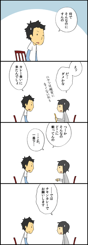 カレー屋なのにハヤシ頼むんかい!って突っ込みざるおえない。