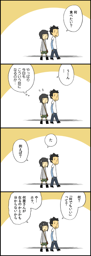 最初に「なんでもいい」といった女が「あれはダメ」「これは今食べたくない」ばかりで、