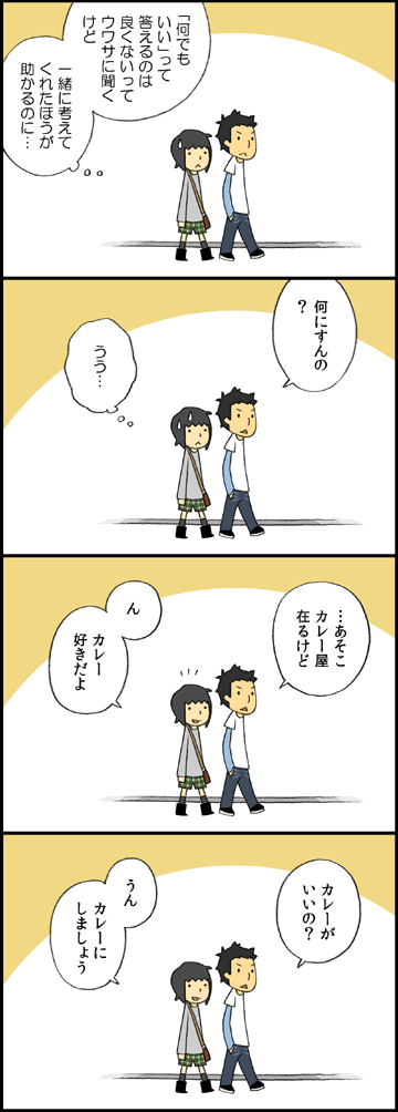 こういうときは「そば屋に行けばカレー頼むよ?」とか言ってけむに巻くとよいな