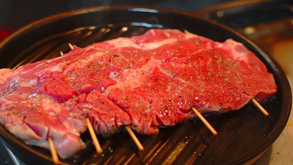 うなぎみたいに肉に串刺してて笑った