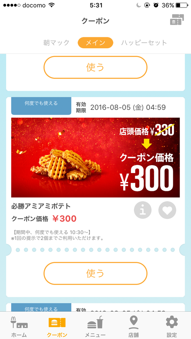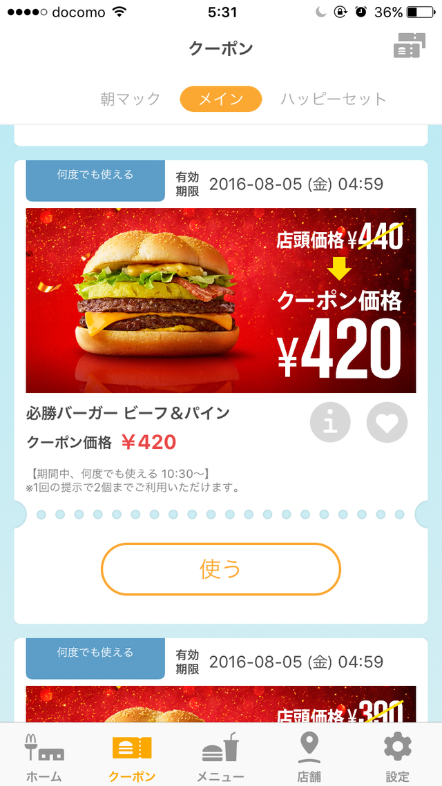 なんかクーポンあると使わないと損な気がして、でも登録するほど