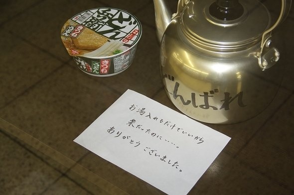 渋谷駅山手線ホームにて営業していた日清の「どんばれ屋 渋谷駅ナカ店」が2016年7月31日に閉店した。 カップめんのみを提供するという新しいスタイルが話題になったこともあり、ツイッターでは残念がる声も見られた。 そして、店長の「書置き」と思われる画像が8月1日に投稿されると、その哀愁たっぷりの内容が注目を集め、1万回以上リツイートされた。 続きはソース http://dailynewsonline.jp/article/1173797/