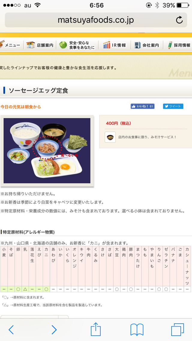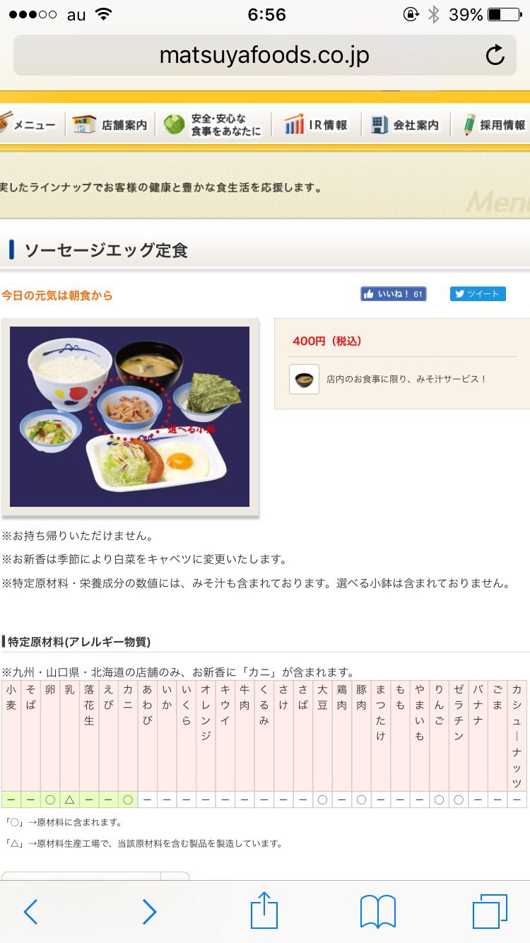 松屋のソーセージエッグ定食は400円でも充分神だからいつも食べるよ(それ以外で松屋に行くことはないけど)