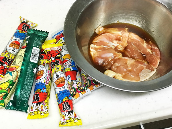 >ちなみに一口サイズの唐揚げを3個分作るのに、うまい棒2本くらい使用します。