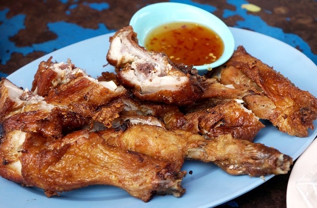 カンナチャプリーの屋台で肉を焼いたものたのだだら