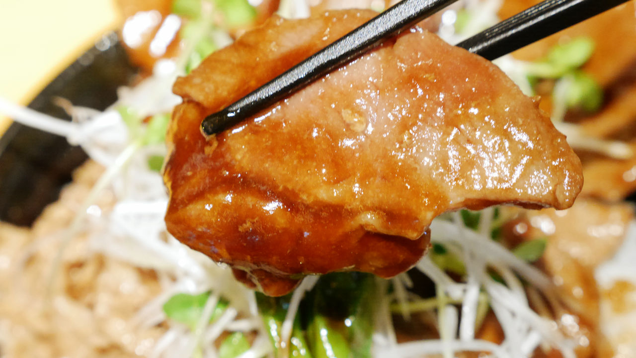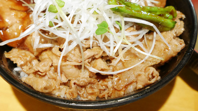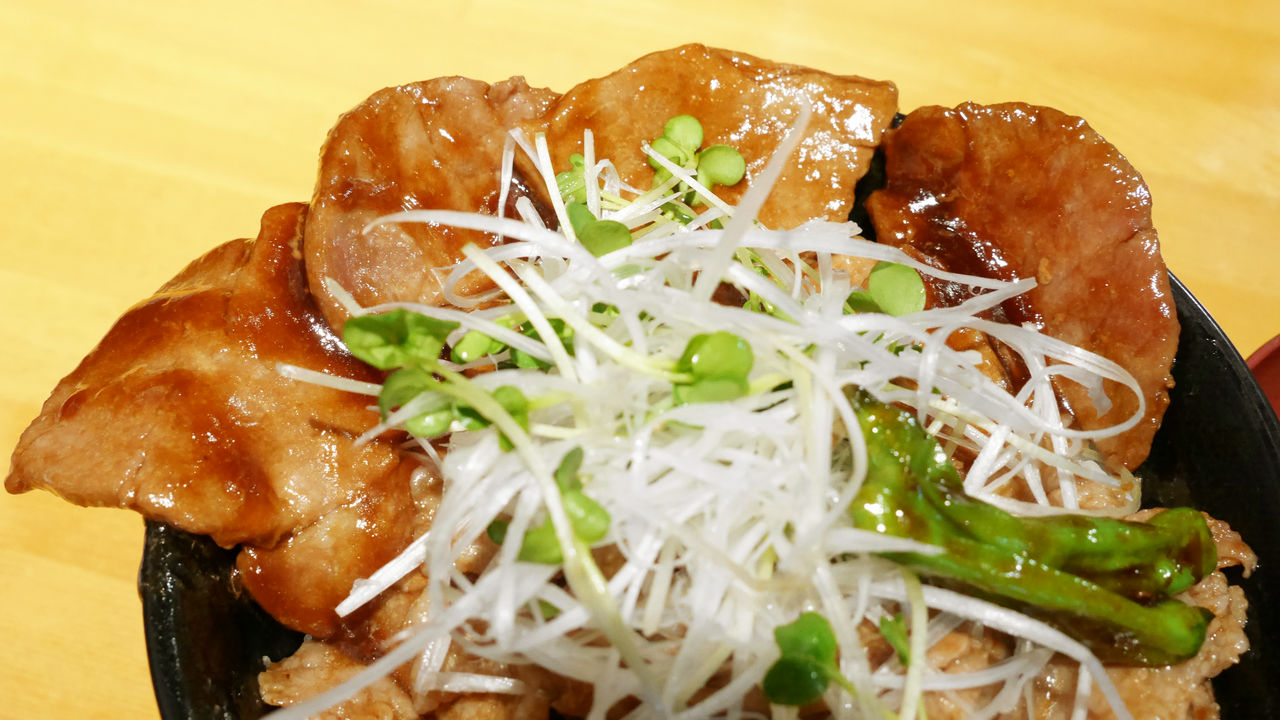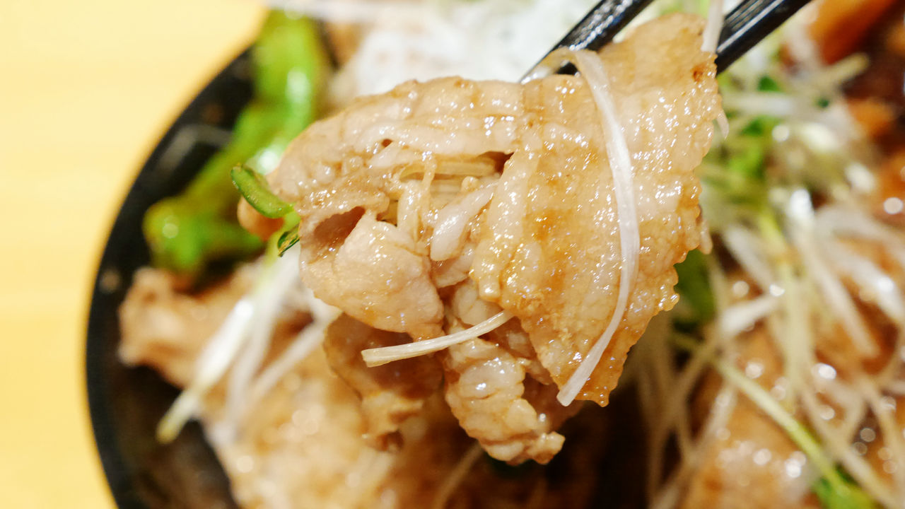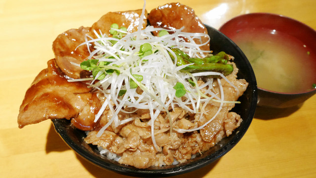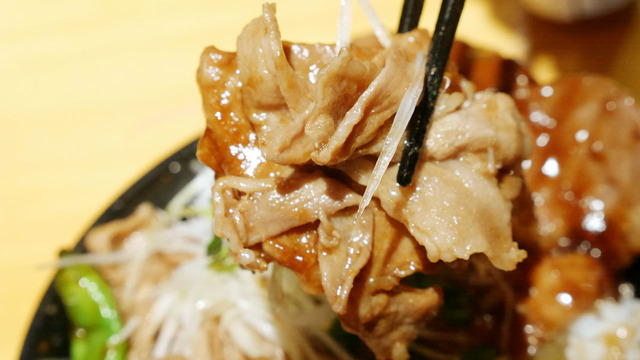 もう半分は豚バラで、2種類の豚の部位が一度に楽しめる丼になっています。