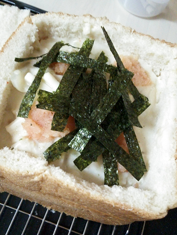 明太子も挟んで 数回繰り返して上に海苔をかける