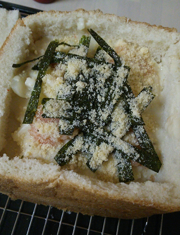 今回は粉チーズしかなかったのが残念だけど、チーズをふってオーブンに入れる