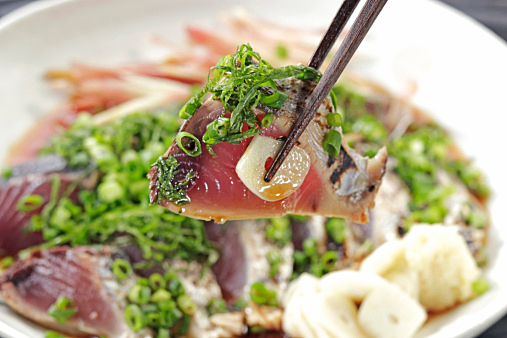 大量の薬味を使う事で殺菌と味の補填をおこなったのがたたきという調理法。