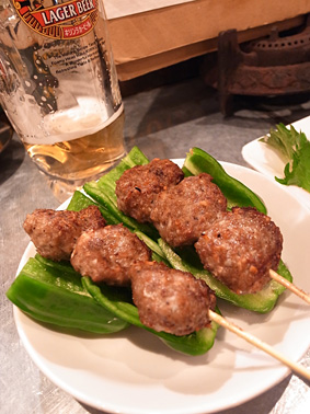 挽き肉に生姜を混ぜて焼き、仕上げに黒胡椒ふるとさっぱりとして酒に合う。