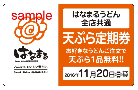 讃岐うどんチェーン「はなまるうどん」が、10月6日(木)より、全国のはなまるうどん店舗にてうどんを注文したお客様に天ぷらを一品無料でサービスする「天ぷら定期券」を販売します。