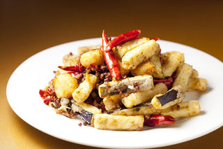 龍門の茄子の素揚げと鷹の爪と山椒炒めたやつ