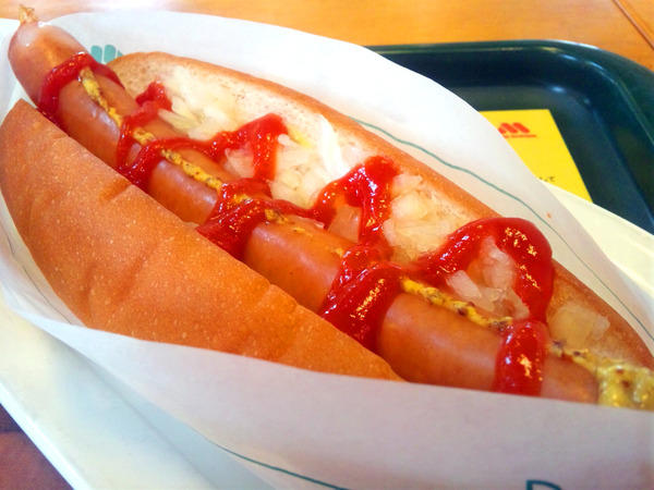 モスはモスバーガーとスパイシーチリドッグを食べるところ