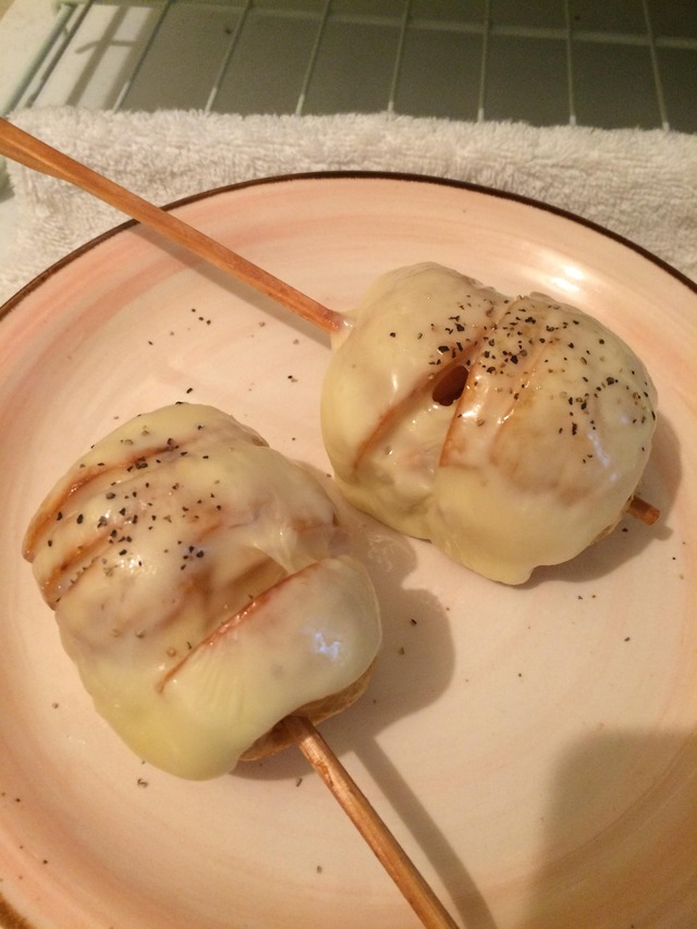 ちなみに包丁入れる時は、ジャガイモの厚さがバラバラになるようにすると所々にポテチみたいな生地ができるよー