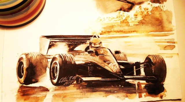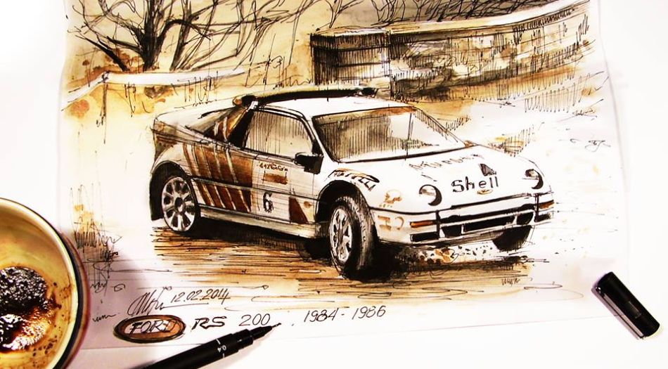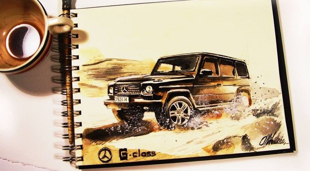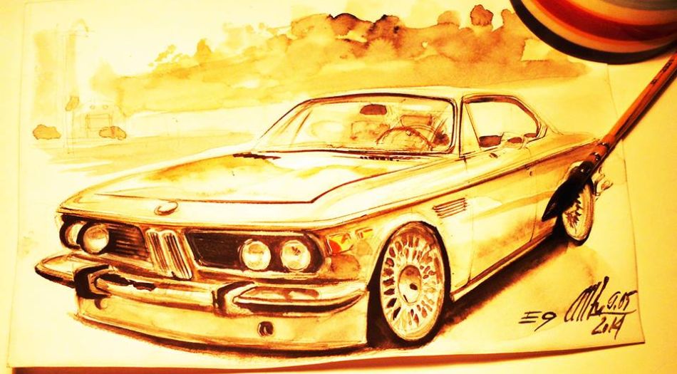 珈琲にペンを加えて描かれた車 レトロ感がよいです
